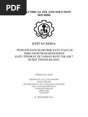 Kertas Kerja Projek Pendawaan Elektrik Satu Fasa Rumah Kediamandocx Pdf
