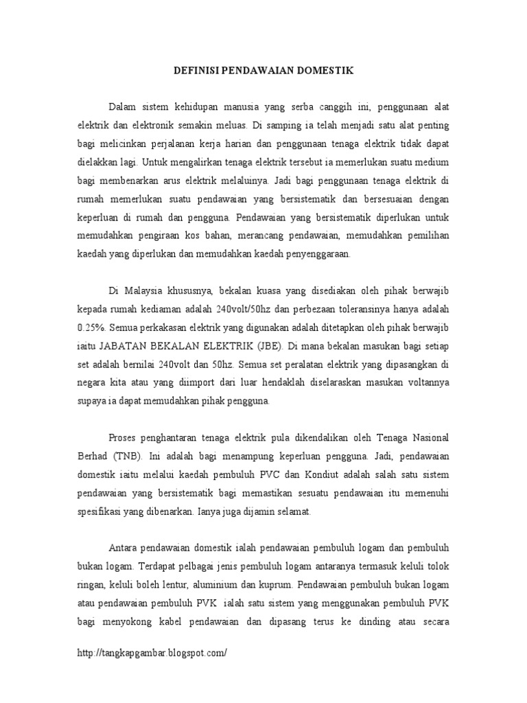 PISMP NAMA SEKOLAH. Pendawaian elektrik adalah terdiri dari kelengkapan elektrik seperti kabel papan suis suis utama pemutus litar kenit MCB atau fius pemutus litar arus baki PABRCD mata lampu mata kuasa penangkap kilat dan lainlain lekapan elektrik. Contoh kertas kerja berikut adalah penting sebagai rujukan anda yang ingin melakukan sesuatu seminar kerja atau projek mengikut format terbaru.